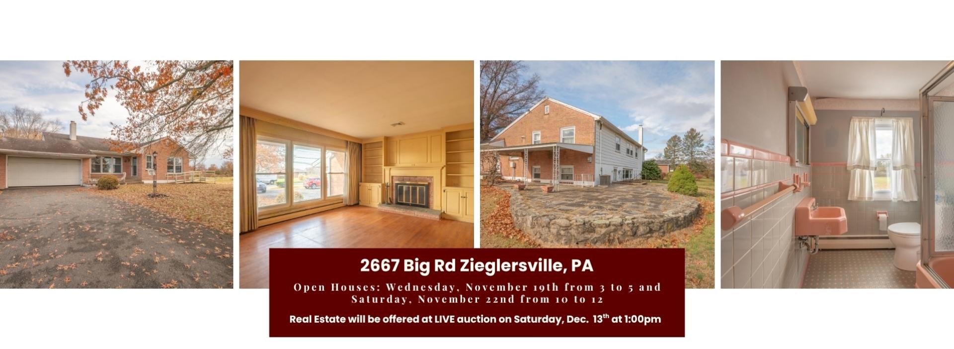 Location: 2667 Big Rd Zieglersville, PA 19492 Open House: Wednesday, November 19th from 3:00pm to 5:00pm and Saturday, November 22nd from 10:00am to 12:00pm Live Real Estate Auction will be held on Saturday, December 6th at 1:00pm
